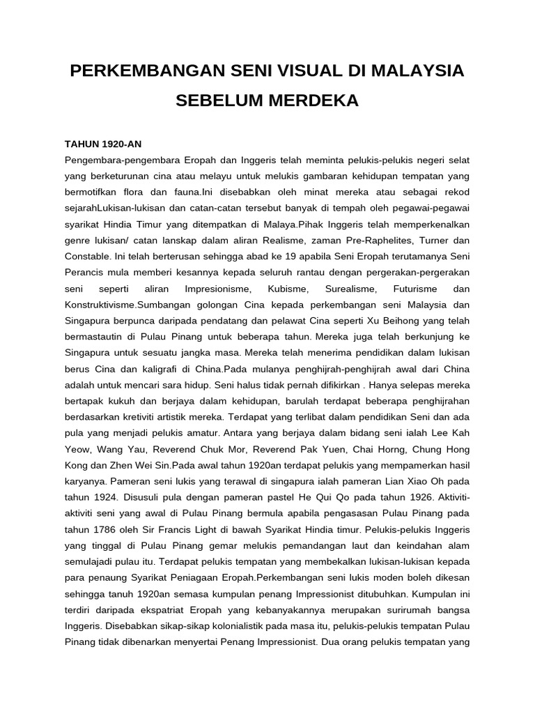Perkembangan Seni Visual Di Malaysia Sebelum Merdeka Pdf